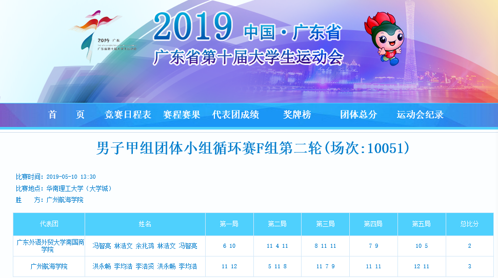 5月10日,广东省第十届大学生运动会乒乓球赛开拍,男子甲组团体赛小组赛上,m88 app乒乓球队3:2战胜广东外语外贸大学南国商学院,首战告捷。