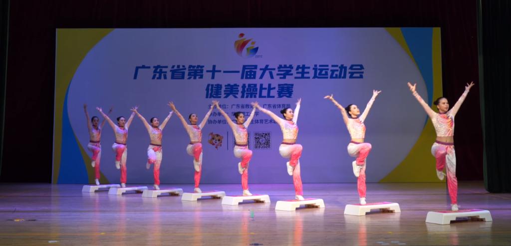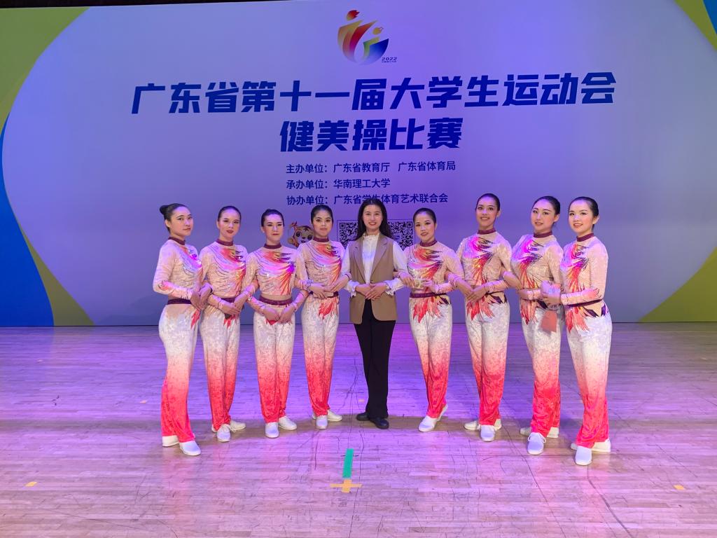 (公共体育教学部供稿)5月21日至23日,广东省第十一届大学生运动会健美操比赛在华南理工大学举行,共有来自全省50所高校,362名运动员参加,本次健美操比赛采取线下录制,线上直播评分的形式进行。m88 app健美操队在胡婧、李冰老师的带领下共有八名运动员参加了两个项目的比赛。经过一年的刻苦训练,运动员的身体素质和竞技水平有了大幅度的提高,教练在动作编排上有了突破和创新,但由于m88 app第一个出场,有氧踏板操以0.3分的劣势位列第九名,女子单人项目也无缘八强 。