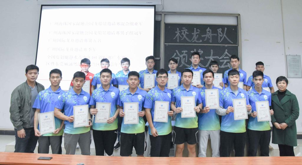 2018年12月28日晚6点,校电白龙舟队队员齐聚教学楼207室召开了本年度总结颁奖大会,公体部副主任肖亚玲教授、麦健民主教练、阙永伟教练作为嘉宾出席了本次会议。一队人,一条船,一起努力,龙舟队员们将踏上新的征程。