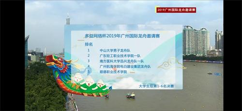 (公共体育教学部供稿)6月15日,由国家体育总局社会体育指导中心、中国龙舟协会、广州市人民政府主办,广州市体育局、广州海事局等承办的2019广州国际龙舟邀请赛在中大北门广场至广州大桥之间的珠江河段举行。广州国际龙舟邀请赛经广州市人民政府25年精心打造,已成为中国传统体育运动的品牌赛事,广州最具有影响力的国际赛事之一。本届广州国际龙舟邀请赛秉承“以水为舟,以舟会友”的办赛理念,以“五洲百舸汇花城 湾区建设谱新篇”为主题,共有来自中国、英国、美国、澳大利亚、孟加拉、加拿大、中国香港、中国澳门等国家和地区124条龙舟队伍报名,其中传统龙12条、22人龙舟72条、彩龙32条、游龙8条。在报名的队伍当中,广州市各区64条,大学生组织10条,社会组织20条,境外龙舟23条,并邀请了佛山、东莞、惠州、清远等6个城市的7支队伍参赛,近4000名运动员参与到传统龙舟600米直道竞速、标准龙舟(22人龙舟)600米直道竞速(包括男子公开组、男子国际组、女子公开组、大学生组)、彩龙比赛及游龙的表演,各种龙舟在珠江面旌旗摇动、展开激烈角逐,充分展示了独特的岭南文化。