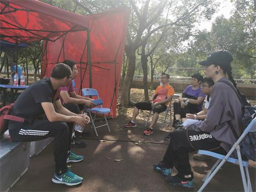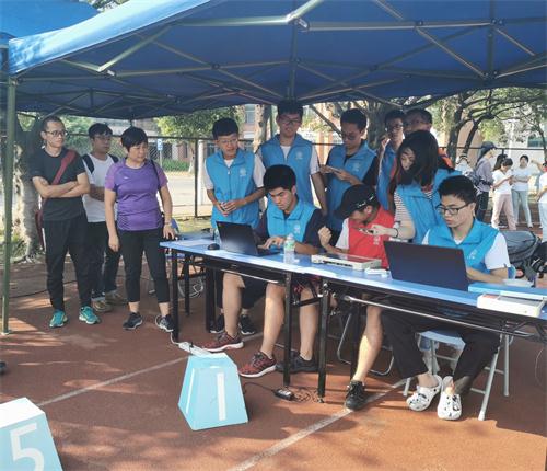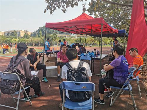 在中山大学田径场,公体部一行首先来到大学生体质健康测试项目50米、中长跑测试处,与在场学生工作人员就工作流程与设备的操作和使用等方面进行了深入的交流。赵云雷老师对中山大学本年度执行《国家学生体质健康标准》、实施大学生体质健康测试情况、体育课程设置和教学大纲向公体部一行作了详细的介绍,其中关于大学生体质测试安排、实施方法、后续成绩整理与上传及测试过程中出现的应急情况、应对措施、体育课成绩的评定、课外体育活动的开展等方面毫无保留地进行了分享。随后,公体部副主任肖亚玲教授、贺泽江副教授对赵云雷老师的热情接待表示感谢,对赵云雷老师体测工作方式方法给予了高度赞赏,并与其就如何进一步高效率开展大学生体质测试工作交换了意见和想法。最后,公体部一行在赵云雷老师陪同下参观了其它体测项目场地。