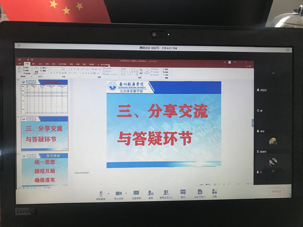2月20日、21日下午3点,肖亚玲副主任接连主持召开两场全体教师视频会议。会议传达了广州市教育系统穗教防控[2020] 8号文件精神,要求开齐开足体育与健康课程,鼓励教职员工和学生积极参加体育活动,鼓励学校每天布置适量体育家庭作业,保证充足睡眠。解读了学校对网络教学的相关要求及公体部远程网络教学实施方案,部分教师分享了各自教学预案,积极利用网络平台,推出线上授课+线下实践的“互联网+居家健身”远程网络授课模式,将体育课网课落到实处。
