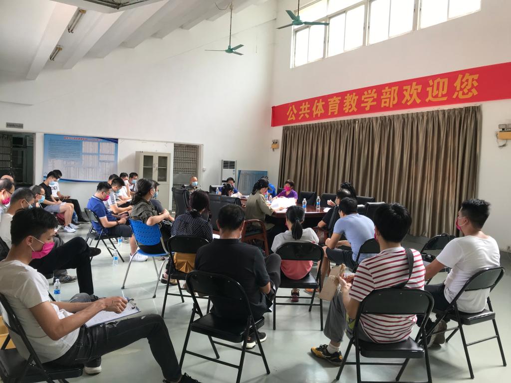 (公共体育教学部供稿)5月14日下午2点,公共体育教学部在田径场105会议室组织召开全体教职工第二次返校会议,肖亚玲副主任主持会议。所有与会人员均按照疫情防控要求,佩戴口罩进入校园,保持1米安全距离,会前出示穗康码并进行体温测试。