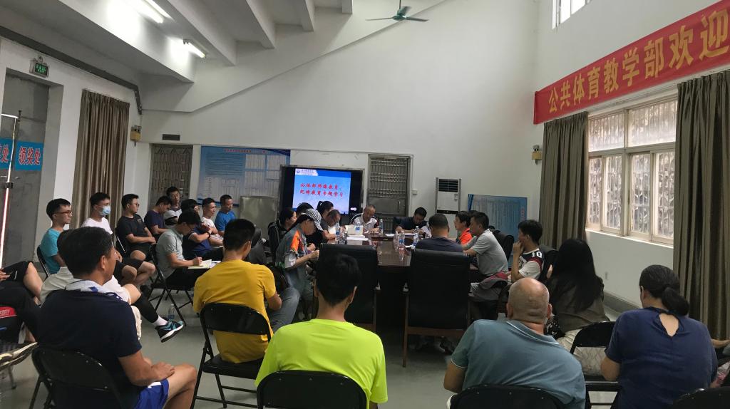 (公共体育教学部供稿)9月17日下午2点,公共体育教学部在田径场105会议室组织全体教职工开展师德教育、纪律教育专题学习,会议由肖亚玲主任主持。