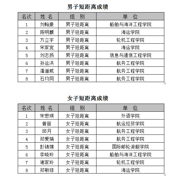 突如其来的暴雨颁奖改到了11月5号,但并没有影响运动员们的热情,比赛按照原计划有序地进行着,经过激烈的角逐,最终决胜出各项前八名。