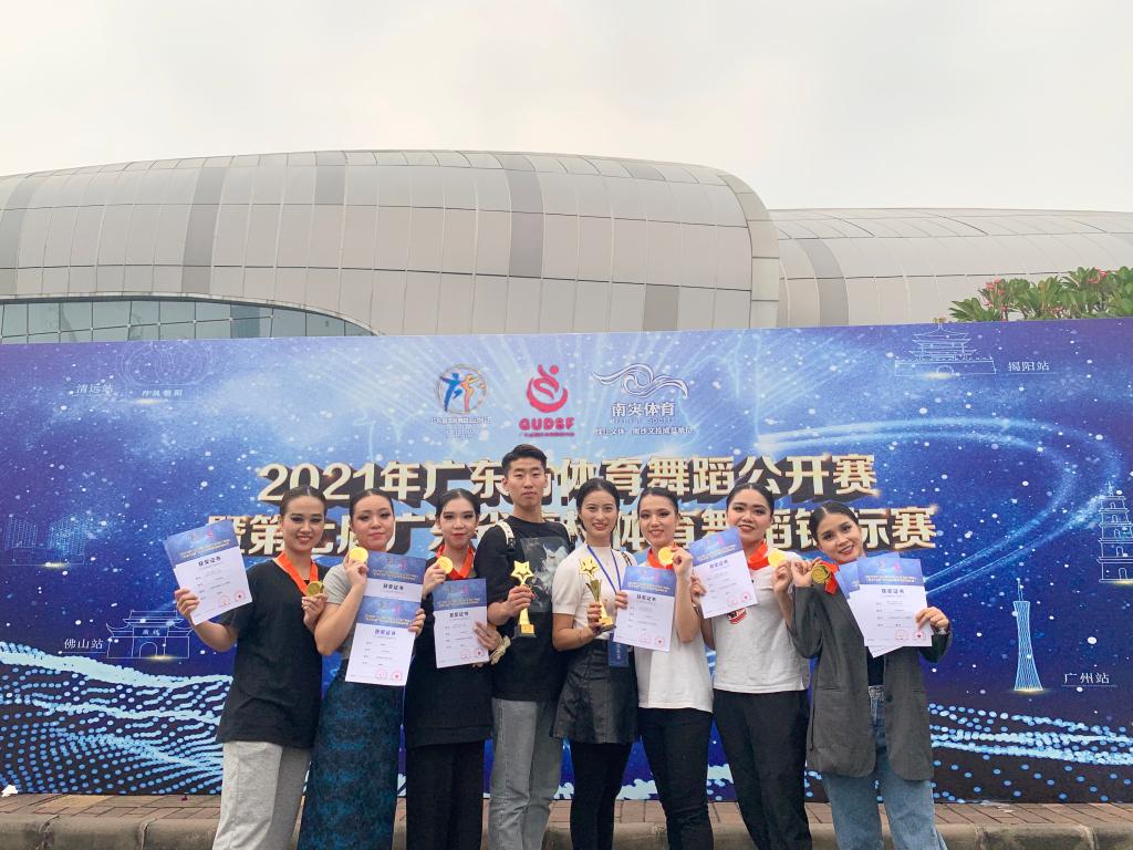 (公共体育教学部供稿)10月30日至31日,2021年广东省体育舞蹈公开赛暨第七届广东省高校体育舞蹈锦标赛,在广州南沙体育馆举行,m88 app体育舞蹈队在公共体育教学部教练兼领队胡婧老师的带领下,不畏对手,经过小组淘汰赛、半决赛、决赛的激烈角逐,在众多竞争对手中脱颖而出,获得了拉丁舞比赛2个第一名、1个第二名、1个第四名、2个第五名和1个第八名的良好成绩。