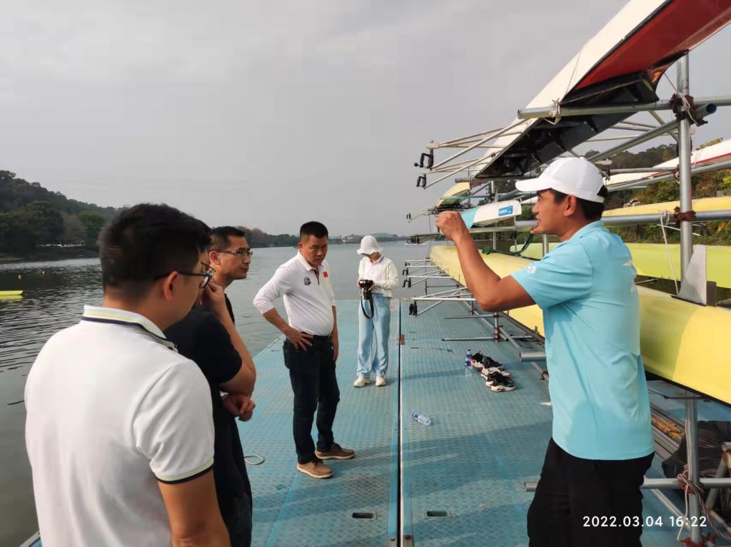 (公共体育教学部供稿)3月3日下午,公体部副主任贺泽江、张立新带队一行7人到广州市赛艇皮划艇训练基地进行考察调研。广州市皮划艇赛艇训练基地位于增城区沿江东路,以原亚运会的龙舟赛场作为训练场地,现共有赛艇、皮艇、划艇运动员共120名。