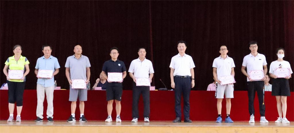 会后,全体人员在体育馆门前合影留念。