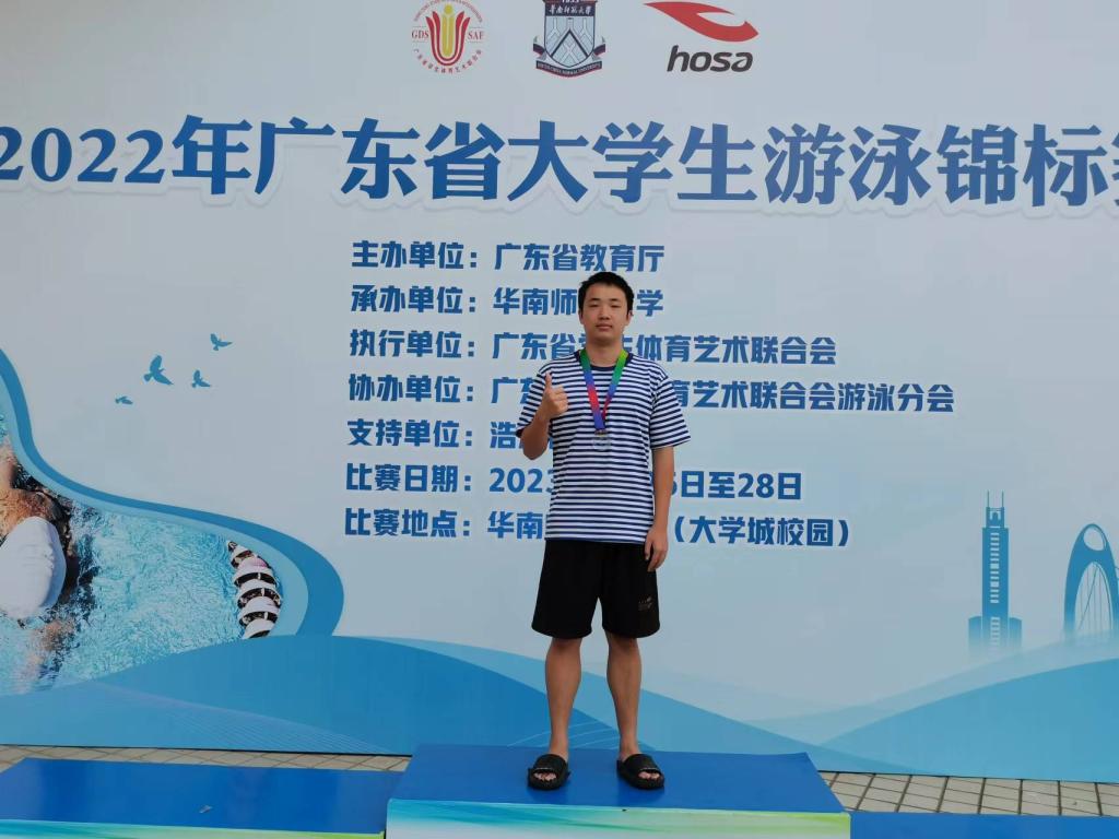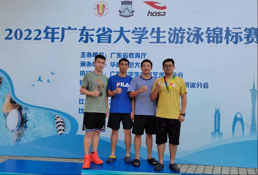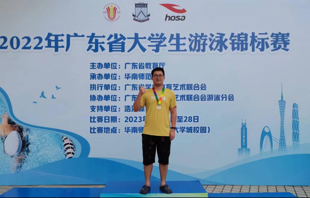 (公共体育教学部供稿)因疫情延迟的2022年广东省大学生游泳锦标赛于2023年5月26日至28日在华南师范大学(大学城校区)举行,m88 app游泳队在领队麦建民老师和教练古志金老师的带领下,共11名运动员参加了大学生甲组11个项目的比赛,获得男子4×100米自由泳接力第三名、男子200米自由泳第四名、男子100米自由泳第六名,来自海运学院的邬轶欣同学一人独得三奖,可喜可贺!