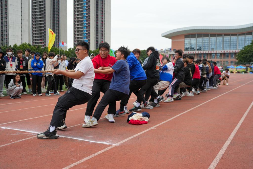这次学校运动会包括学生田径项目、体能项目和教工趣味运动项目三大部分。田径赛场是高度和远度的比拼,比赛过程高潮不断迭起、精彩纷呈。体育馆内体能项目比赛现场,一派紧张热烈的欢腾景象。引体向上、仰卧起坐接力赛奏响出力量与激情的乐章;跳绳接力翩飞起舞的弧线是彩绳的翅膀,击打地面的绳索碰撞出激情的火花;波比跳、立定跳远、50米迎面接力和拔河比赛中努力拼搏的身影是写在青春篇章里的诗行。教工趣味运动比赛,教师们的激情,观众的热情,让比赛愈加热火朝天。啦啦队响亮的呐喊声,此起彼伏,同学们齐心协力,都向着为各自学院争光的目标而奋斗,班级荣誉感和合作精神深刻印在了同学们的心上。
