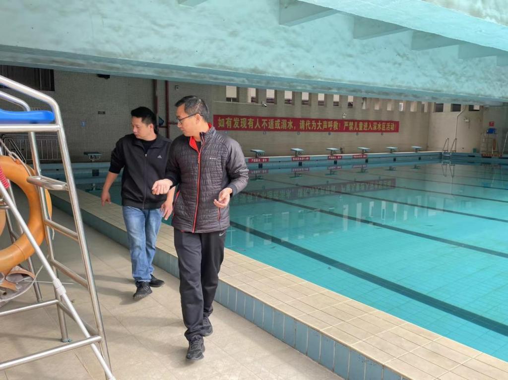 (公共体育教学部供稿)元旦将至,为切实做好节日期间体育场所各项安全工作,有效防范各类安全事故的发生,12月28日上午,公体部副主任、场馆中心主任贺泽江带领场馆管理员,对m88 app南北校区室外运动场、大学生体能训练中心、游泳池、跳水池、体育场馆、器材室库房进行了一次安全大检查。