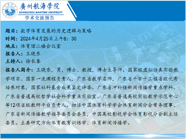 学术讲座预告:王晓东《数字体育发展的历史逻辑与策略》