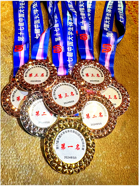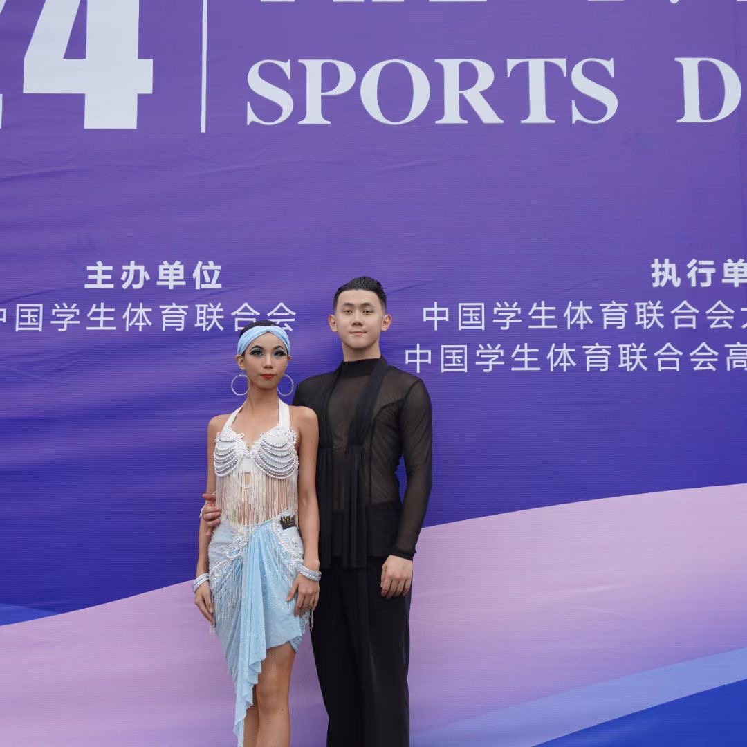 在学校团委和公体部的大力支持下,m88 app体育舞蹈队首次参加中国大学生体育舞蹈锦标赛,教练与运动员们一刻也不敢松懈,备赛期间,互相鼓劲,充分利用课余时间一遍又一遍重复训练,脚被磨出水泡,贴上创口贴,穿上高跟鞋,继续跳;和舞伴沟通技术动作产生分歧矛盾时,咽下委屈,擦干眼泪,继续跳;增大训练强度,精疲力尽,休息一下,继续跳。就这样一天一个脚印,不断磨砺,运动员们意志品质、舞伴间的默契度、舞蹈技术和竞赛水平与日俱增,终于迎来了赛场上的高光时刻!
