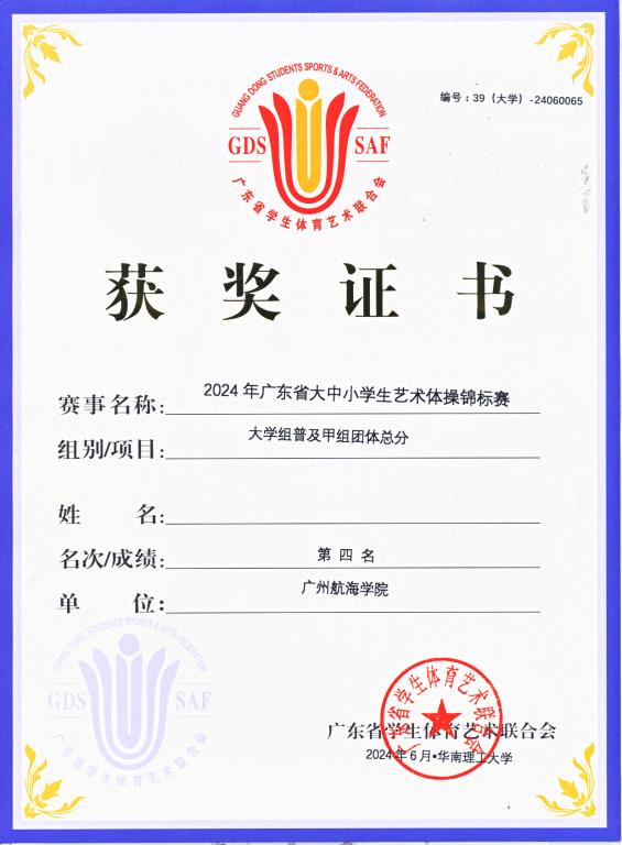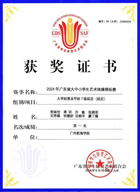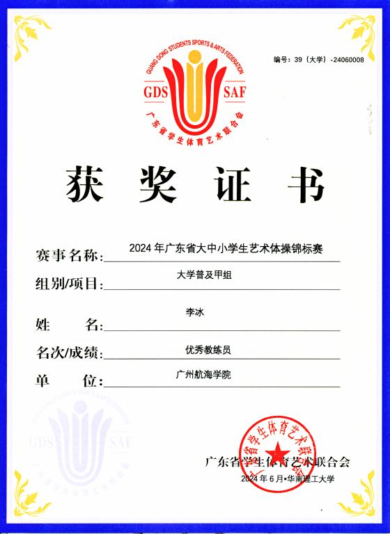 (公共体育教学部、校团委供稿)由广东省教育厅指导、广东省学生体育艺术联合会主办的2024年广东省大中小学生艺术体操锦标赛于2024年5月31日至6月2日在华南理工大学举行。m88 app学生艺术体操队在李冰老师的带领下,夺得了大学组普及甲组7级规定项目第一名和大学组普及甲组团体总分第四名,李冰老师被评为优秀教练员。