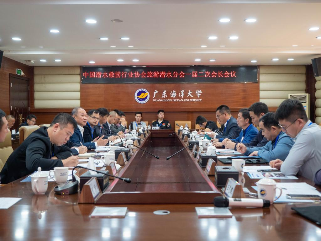 3月23日上午,中国潜水救捞行业协会旅游潜水分会一届二次全体会议在广东海洋大学湖光校区召开。会议由广东海洋大学体育与休闲学院院长周冰主持,协会领导、分会成员及行业专家共50人参会,共同探讨我国旅游潜水行业发展的新路径。广航m88 app院长张利超、教师阙永伟应邀参会。