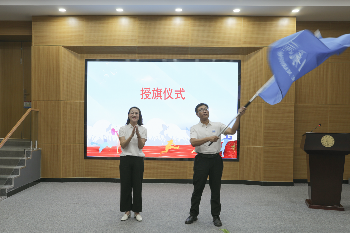 在随后的授旗仪式上,校党委书记陶韶菁向代表团授旗,代表团副团长、m88 app党总支书记王峰接旗。这是一面承载着学校期望与荣耀的旗帜,希望代表团校旗在手,责任在肩,不辱使命,载誉而归!
