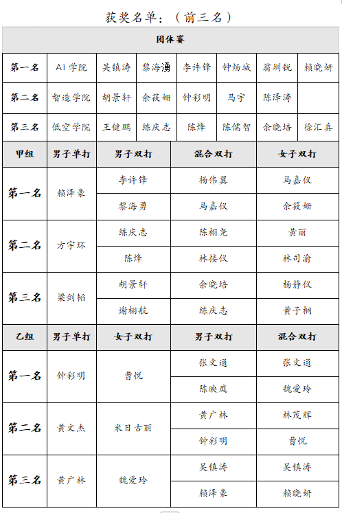 在历时四天的赛程中,累计上演208场精彩对决,最终,人工智能学院、智能制造学院、低空学院分获团体赛前三名,其它单项赛冠亚季军也各有归属。生动展现广航学子昂扬向上的青春风貌与校园体育文化的蓬勃生机。
