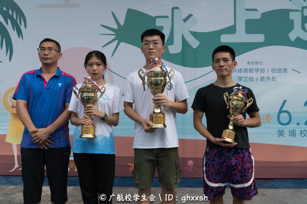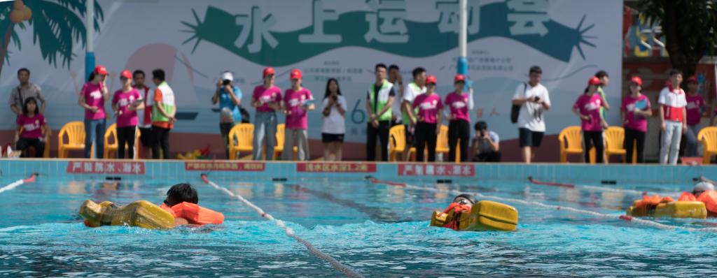 一场夏雨过后,水上运动会如期举行。天气闷热潮湿,会场上欢乐气氛丝毫不减,现场彩旗飘飘,观众呐喊热情高涨。裁判员、工作人员,各就各位,各司其职,有条不紊。本届运动会最大的亮点是与航海技能项目、水上趣味项目相结合,趣味性、参与度比往届都有所提高。经过运动员的激烈角逐和顽强拼搏,最终学生女子组团体总分第一、二、三名分别为海运学院、船舶与海洋工程学院、港口与航运管理学院;学生男子组团体总分第一、二、三名分别为轮机工程学院、海运学院和船舶、海洋工程学院;学生组混合团体总分第一、二、三名分别为海运学院、船舶与海洋工程学院和轮机工程学院。航务学院张立同学打破学生男子50米仰泳项目学校记录。