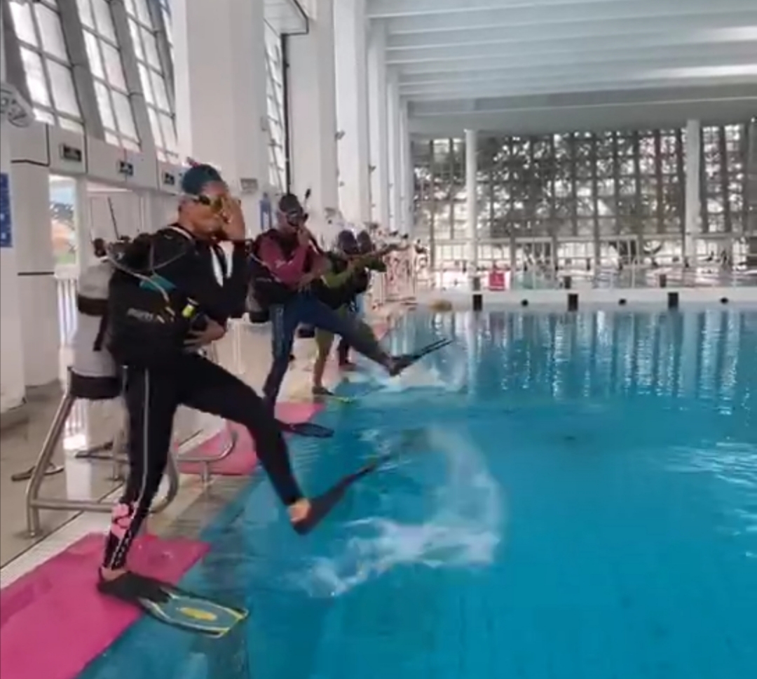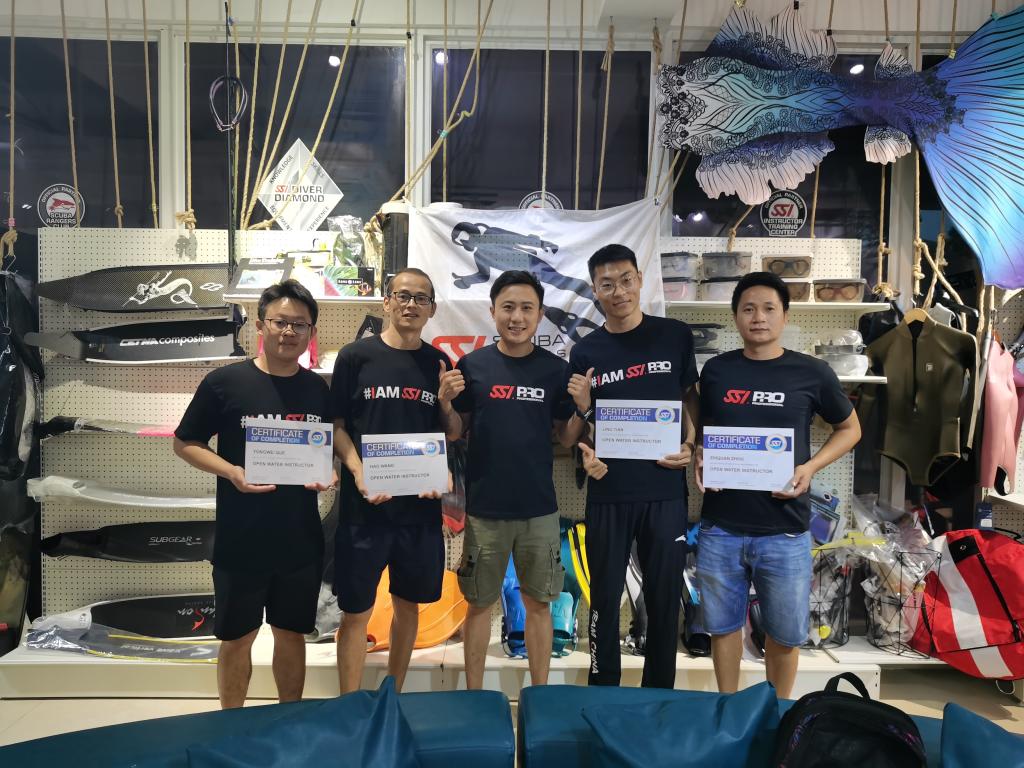 汉森潜水中心是目前国内唯一一家SSI钻石级教练发展中心,拥有一年四季恒温4.8米深水池,有着广州小“马尔代夫”的称号。该中心场地完善、设备齐全、团队专业化,有全方位、重实效的培训体系。在为期45天的培训中,由于培训内容庞大,知识涵盖面广,为保证培训质量,汉森潜水中心蔡思哲教练官精心制定了科学的授课计划,整体采用了理论教学与实践操作相结合的方式展开。四位教师不怕苦不怕累,认真听课、积极交流、努力实践,在蔡教官的辛勤教授与指导下出色完成了潜水装备使用方法与常规检查及调试、水下生理反应原理、水下心理调节、因潜水不当而引发的各种疾病的症状和处理方法等理论内容的学习;完成了室内潜水池与开放水域的水面和水下装备的穿戴、水面正浮力技巧、水下中性浮力技巧、水下负浮力技巧、水下拖带、水下救援、水面拖带、水面救援等十余项技术的训练与实践;完成了理论模拟教学、技术模拟教学的训练与实践等。期间,经过蔡教官的考核,四位教师先后取得了开放水域潜水员、压力与救援、正确反应源、专长潜水员、开放水域进阶潜水员、潜水大师的认证。